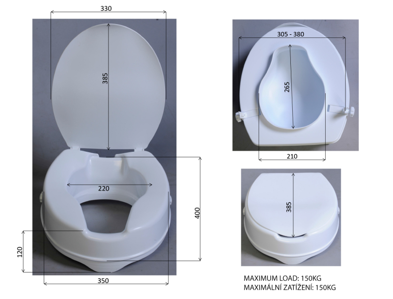 HANDICAP WC sedátko zvýšené 10cm, čierna