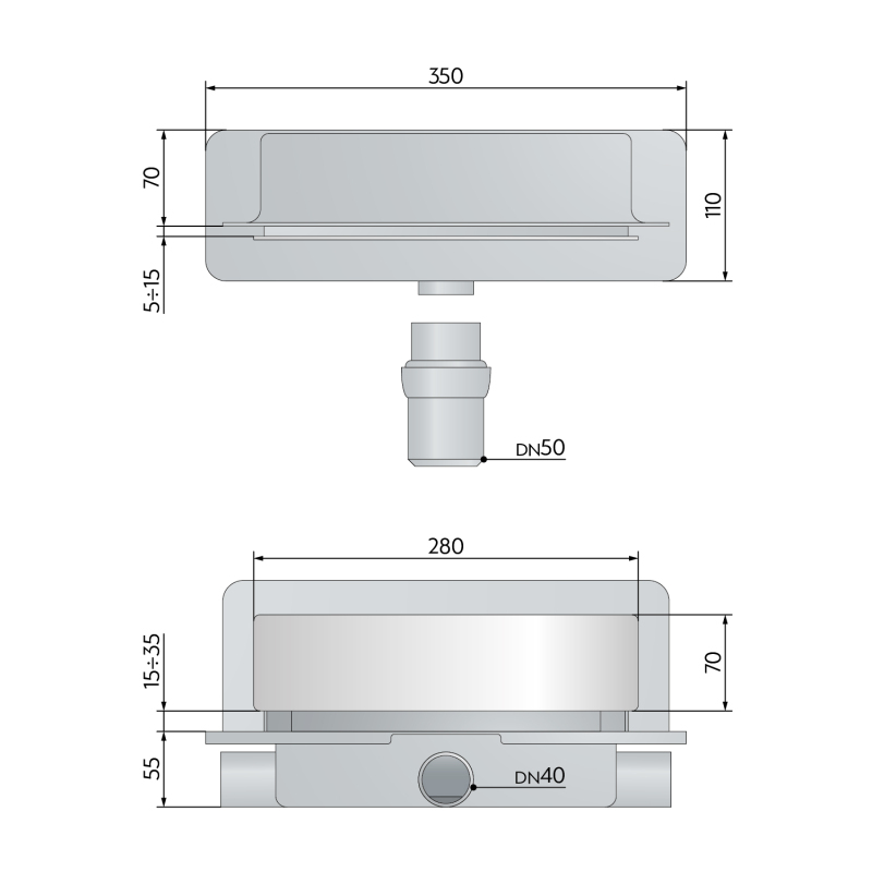 - Instalační výška jen 55 mm je vhodná pro rekonstrukce koupelen