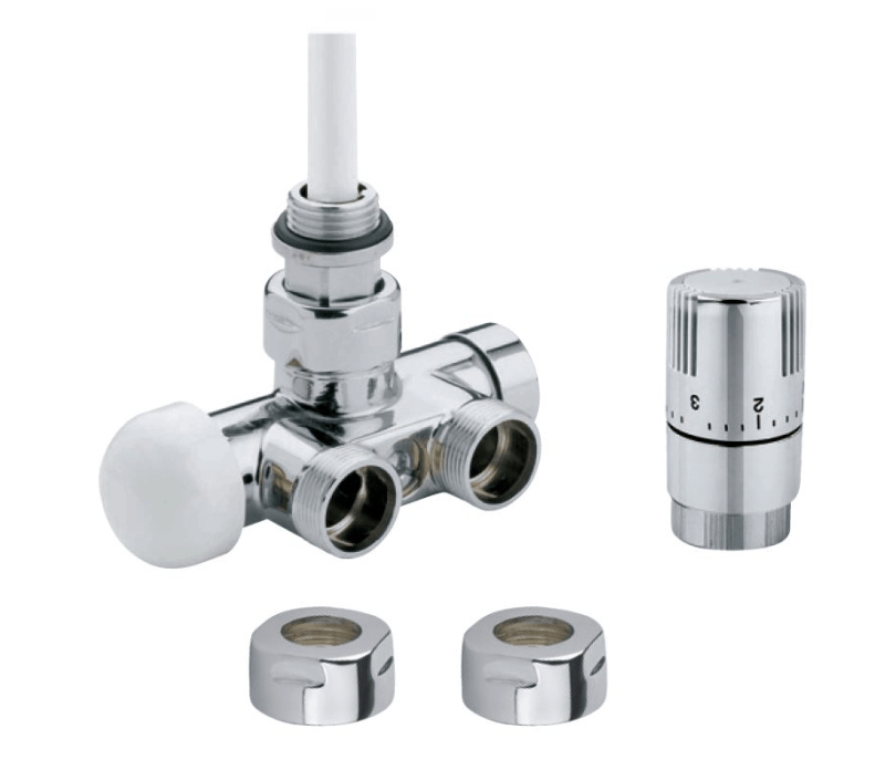 Termostatický set rohový stredový pre jednobodové pripojenie, chróm, ľavý pre pripojenie na medené rúrky