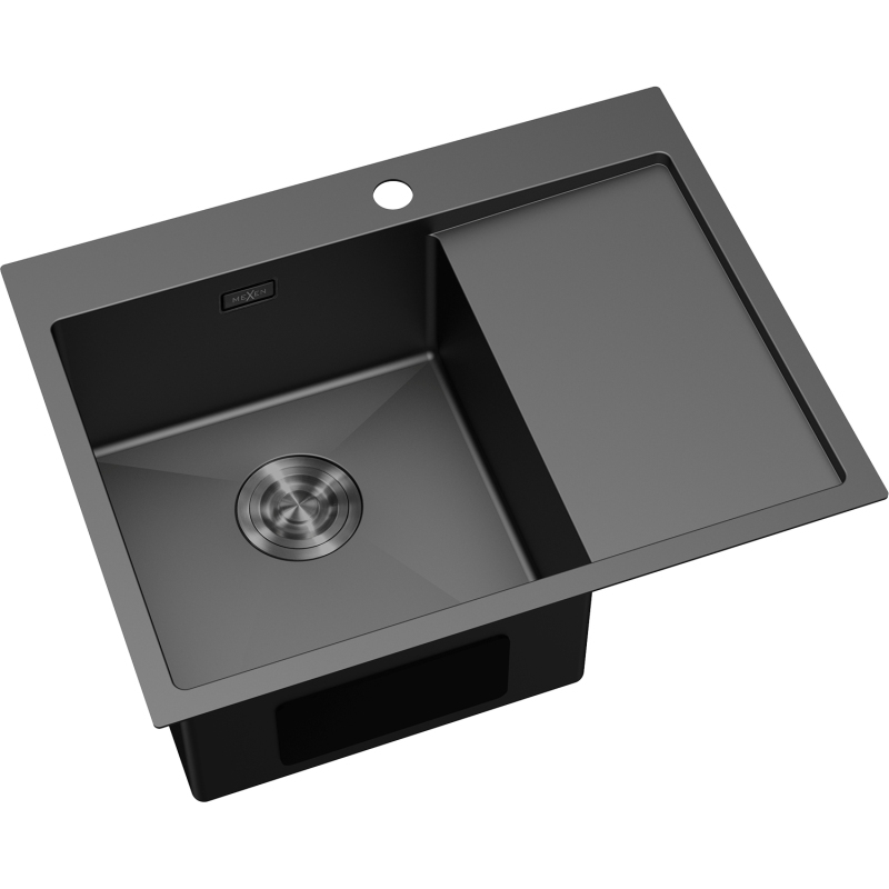 Jednodrezový oceľový drez Mexen Exar s odkvapkávačom, ľavý, 620 x 480 mm, čierny - 6431621005L-70