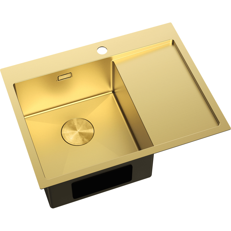 Jednodrezový oceľový drez Mexen Exar s odkvapkávačom, ľavý, 620 x 480 mm, zlatý - 6431621005L-55