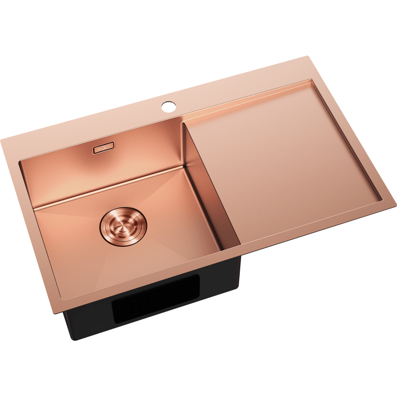Jednodrezový oceľový drez Mexen Exar s odkvapkávačom, ľavý, 780 x 480 mm, meď - 6433781010L-65