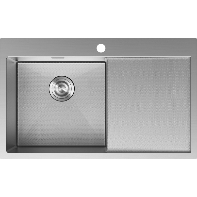 Jednodrezový oceľový drez Mexen Exar s odkvapkávačom, ľavý, 780 x 480 mm, nerezová oceľ HC - 6433781010L-01HC