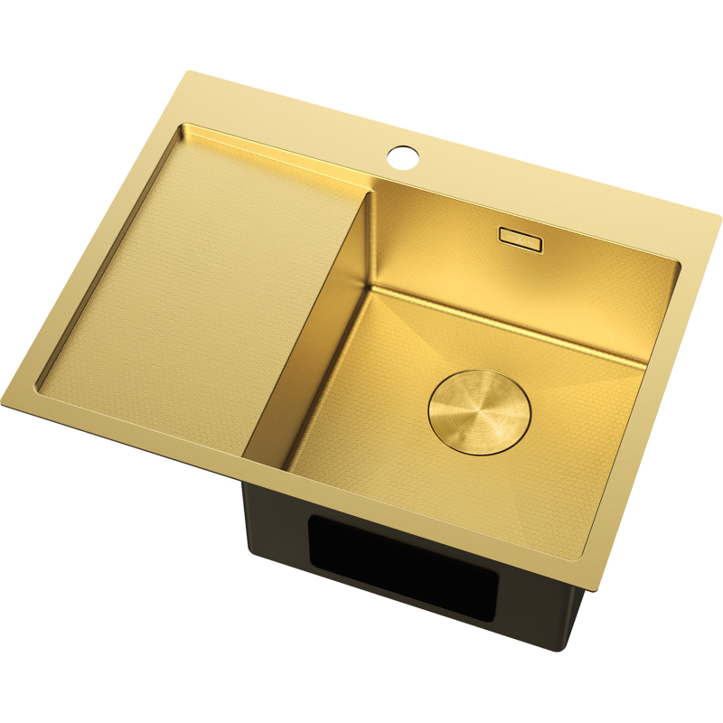 Jednodrezový oceľový drez Mexen Exar s odkvapkávačom, pravý, 620 x 480 mm, zlatá HC - 6432621005P-55HC