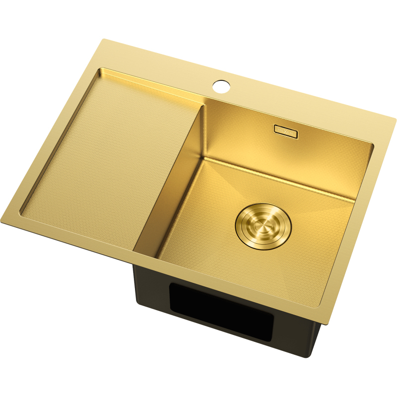 Špecifikácia produktu: Rozmer: 620x480x200 mm Hĺbka drezu: 200 mm Rozmery drezu: 380x350 mm Hrúbka oceľového hrán drezu: 3 mm Hrúbka oceľového hrán drezu: 1 mm Polomer zaoblenia rohov drezu: R10 Priemer odtoku Typ: Vstavaný, pravý Materiál: Nerezová oceľ AISI 304 Farba: Zlatá Povrch: Voština Povrchová úprava sifónu: Zlatá Otvor na prepad: Áno Otvor na batériu: Áno Ručný sifón s odpadkovým košom a zátkou Prídavný kryt odtoku Skrytý otvor na prepad Zvukovo izolačný poškriabaniu a zmene farby Odolnosť voči vysokým teplotám a tepelným šokom Povrch pre ľahké čistenie