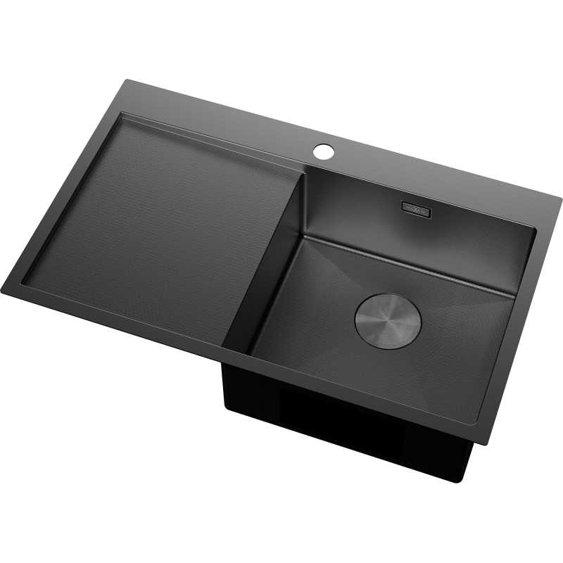 Jednodrezový oceľový drez Mexen Exar s odkvapkávačom, pravý, 780 x 480 mm, čierny HC - 6434781010P-70HC