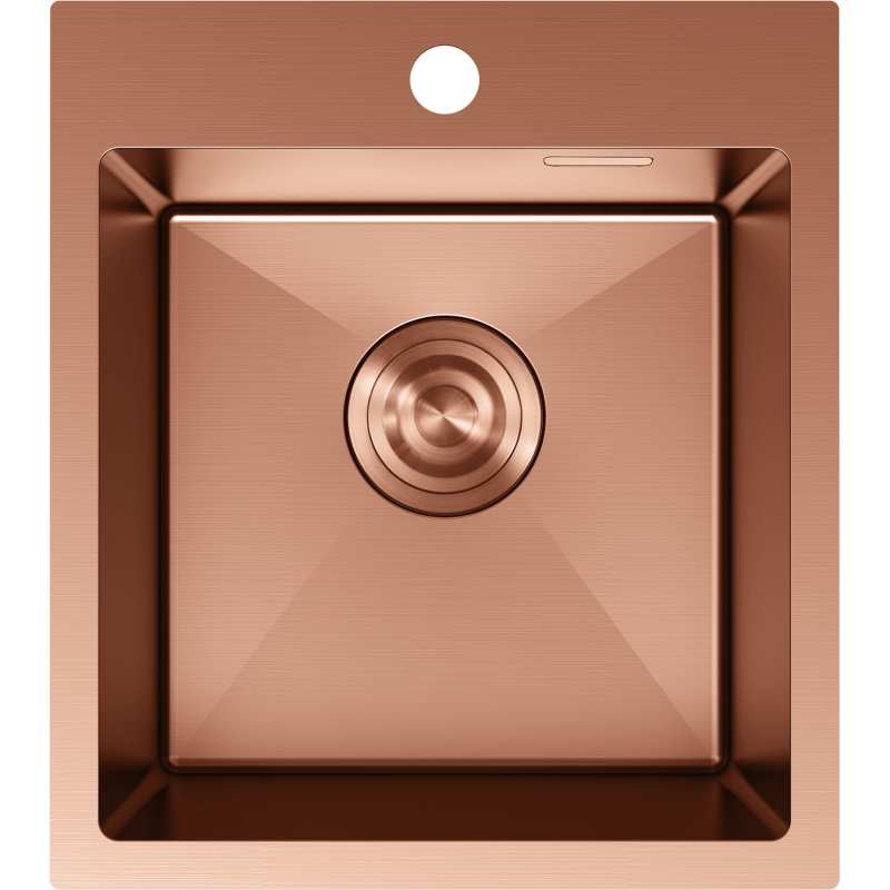 Špecifikácia produktu: Rozmer: 400x450x200 mm Hĺbka drezu: 200 mm Rozmery drezu: 350x350 mm Hrúbka oceľového hrán drezu: 3 mm Hrúbka oceľového hrán drezu: 1 mm Polomer zaoblenia rohov drezu: Typ1-2 Materiál: Nerezová oceľ AISI 304 Farba: Meď Povrch: Hladký Povrchová úprava sifónu: Meď Prepadový otvor: Áno Otvor pre batériu: Áno Ručný sifón s odpadkovým košom a zátkou Prídavný kryt odtoku Skrytý prepadový otvor Zvukovo izolačné rohože k drezu Odolnosť voči vysokým teplotám a tepelným šokom Povrch pre ľahké čistenie