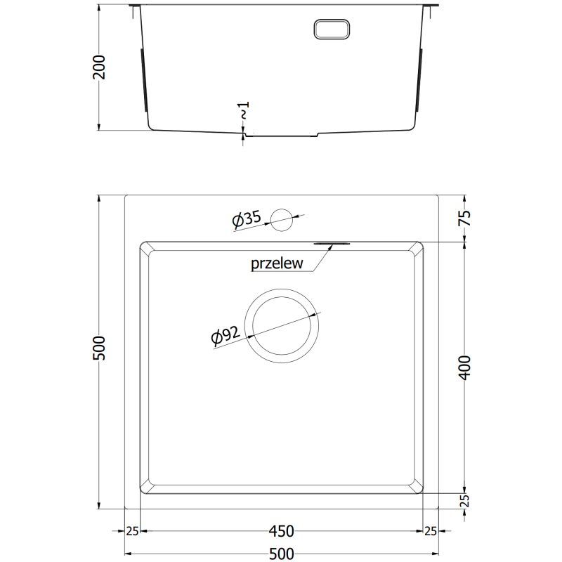 Špecifikácia produktu: Rozmer: 500x500x200 mm Hĺbka drezu: 200 mm Rozmery drezu: 450x400 mm Hrúbka oceľového hrán drezu: 3 mm Hrúbka oceľového hrán drezu: 1 mm Polomer zaoblenia rohov drezu: Typ1- Priemer2 Materiál: Nerezová oceľ AISI 304 Farba: Meď Povrch: Voština Povrchová úprava sifónu: Meď Otvor pre prepad: Áno Otvor pre batériu: Áno Ručný sifón s odpadkovým košom a zátkou Prídavný kryt odtoku Skrytý otvor pre prepad Zvukovo izolačné rohože k drezu Odolnosť voči vysokým teplotám a tepelným šokom Ľahko čistiteľný povrch