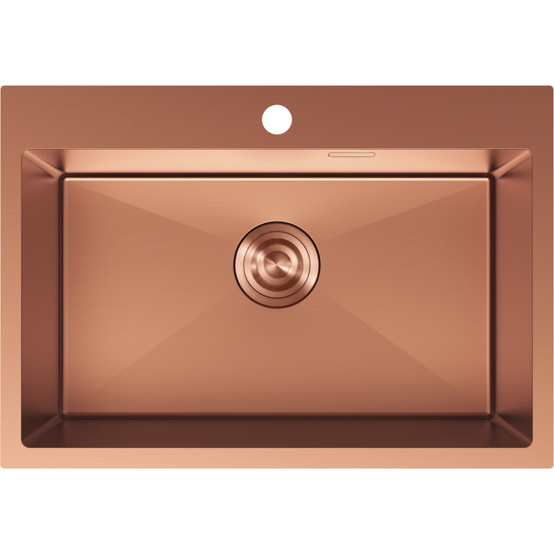 Špecifikácia produktu: Rozmer: 650x450x200 mm Hĺbka drezu: 200 mm Rozmery drezu: 600x350 mm Hrúbka oceľového hrán: 3 mm Hrúbka oceľového hrán drezu: 1 mm Polomer zaoblenia rohov drezu: R10 Priemer odtoku: ø Nerezová oceľ AISI 304 Farba: Meď Povrch: Hladký Povrchová úprava sifónu: Meď Prepadový otvor: Áno Otvor pre batériu: Áno Ručný sifón s odpadkovým košom a zátkou Prídavný kryt odtoku Skrytý prepadový otvor Zvukovo izolačné rohože k drezu Odol vysokým teplotám a tepelným šokom Povrch pre ľahké čistenie