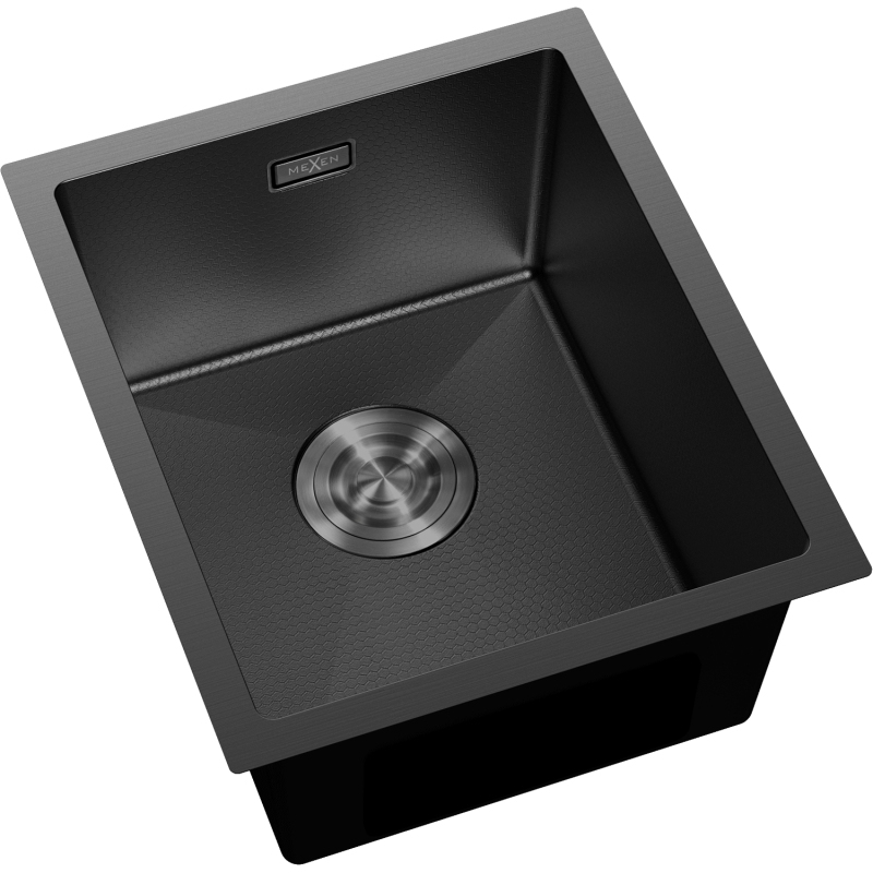 Jednodrezový oceľový drez Mexen Trixo 370 x 440 mm, čierny HC - 6412371000-70HC