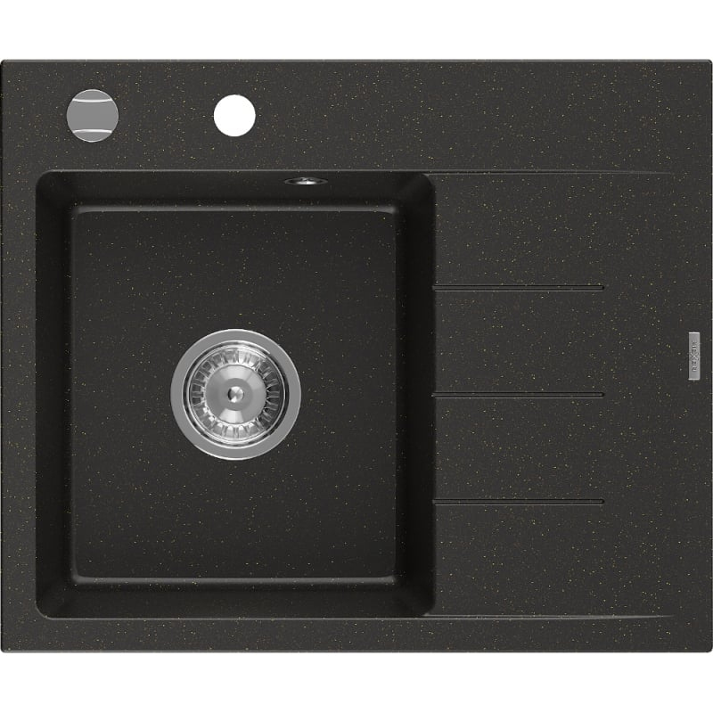 Jednodrezový žulový drez Mexen Ben s odkvapkávačom, ľavý, 600 x 500 mm, čierna/zlatá metalíza, chrómovaný sifón - 6522605000-75