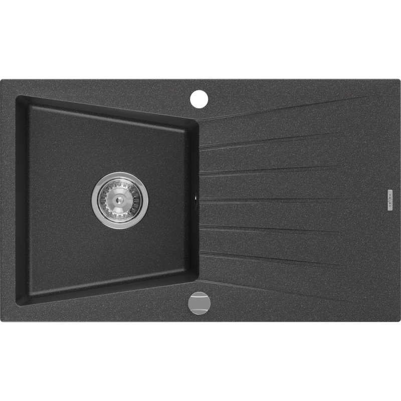 Jednodrezový žulový drez Mexen Cesar s odkvapkávačom 775 x 470 mm, čierna bodka, chrómovaný sifón - 6514771010-76