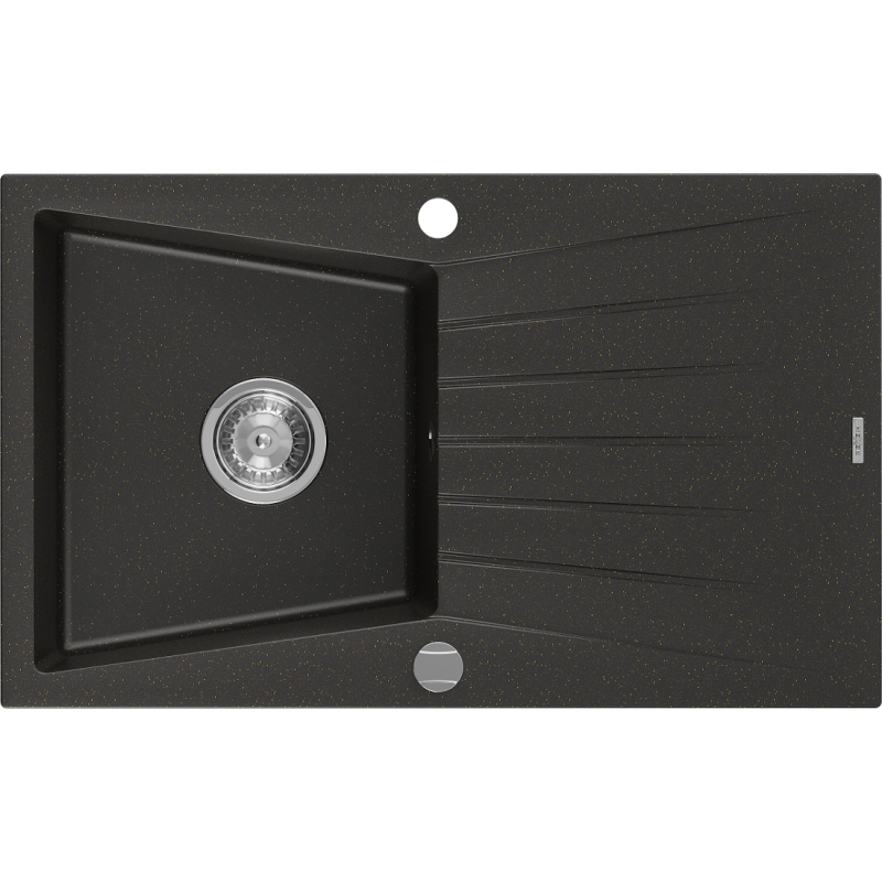 Jednodrezový žulový drez Mexen Cesar s odkvapkávačom 775 x 470 mm, čierna / zlatá metalíza, chrómovaný sifón - 6514771010-75