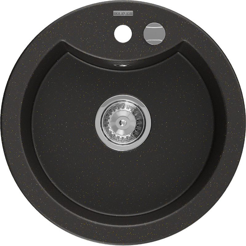 Jednodrezový žulový drez Mexen Diego 488 x 480 mm, čierna/zlatá metalíza, chrómovaný sifón - 6512481000-75
