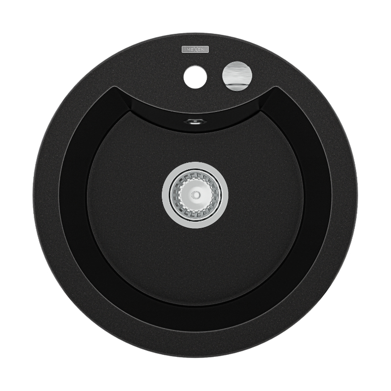 Jednodrezový žulový drez Mexen Diego 488 x 480 mm, čierny, chrómovaný sifón - 6512481000-77