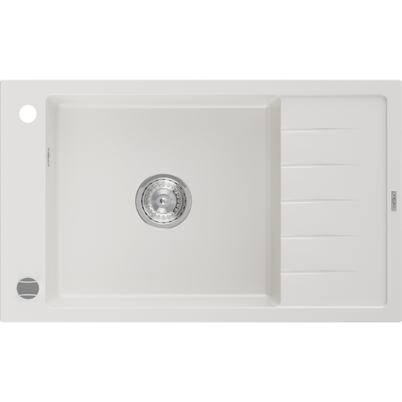 Jednodrezový žulový drez Mexen Elias s odkvapkávačom 795 x 480 mm, biely, chrómovaný sifón - 6511791005-20