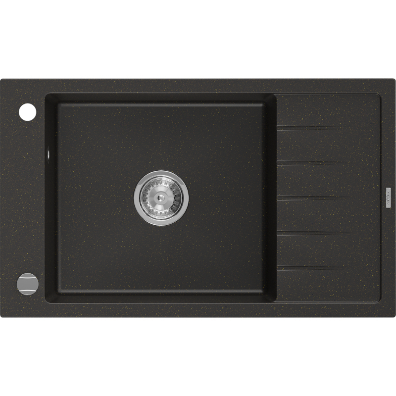 Jednodrezový žulový drez Mexen Elias s odkvapkávačom 795 x 480 mm, čierna/zlatá metalíza, chrómovaný sifón - 6511791005-75