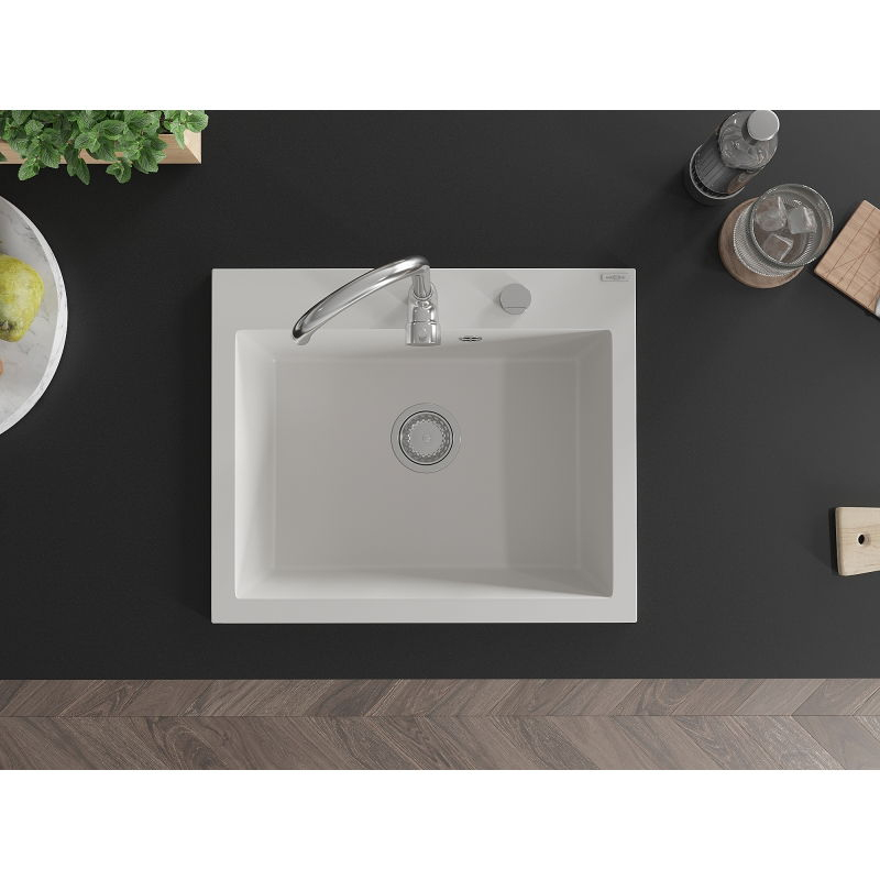 Jednodrezový žulový drez Mexen Elix 600 x 500 mm, biely, chrómovaný sifón - 6525601005-20