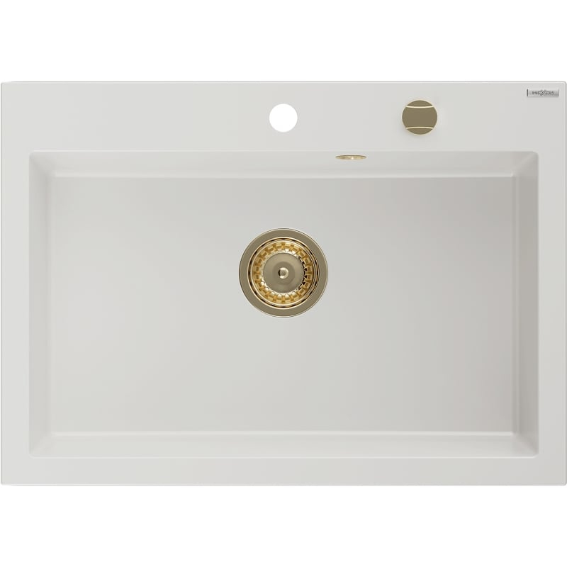 Jednodrezový žulový drez Mexen Elix 700 x 500 mm, biely, zlatý sifón - 6526701005-20-G