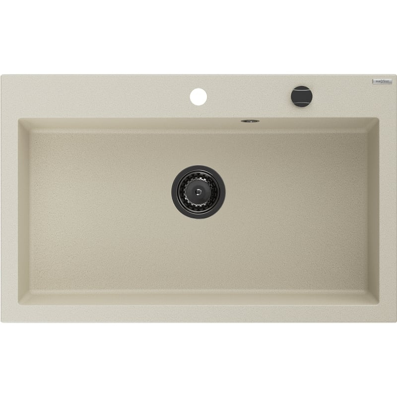Jednodrezový žulový drez Mexen Elix 800 x 500 mm, béžový, čierny sifón - 6527801005-69-B