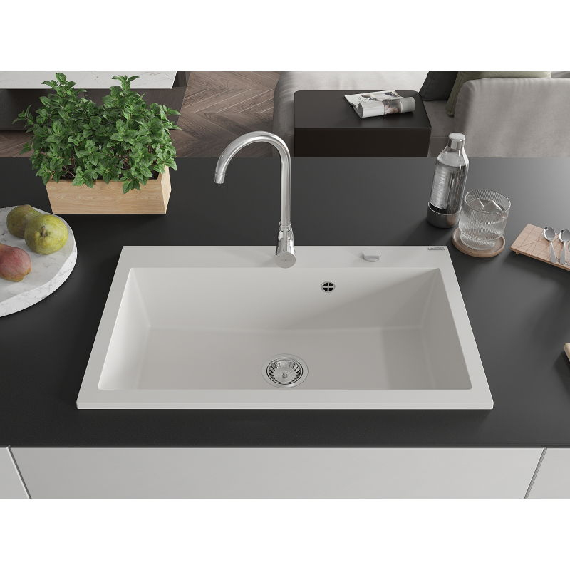 Jednodrezový žulový drez Mexen Elix 800 x 500 mm, biely, chrómovaný sifón - 6527801005-20