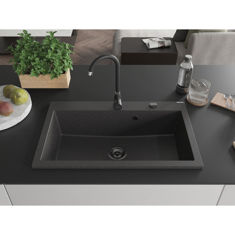 Jednodrezový žulový drez Mexen Elix 800 x 500 mm, bodkovaný čierna, čierny sifón - 6527801005-76-B