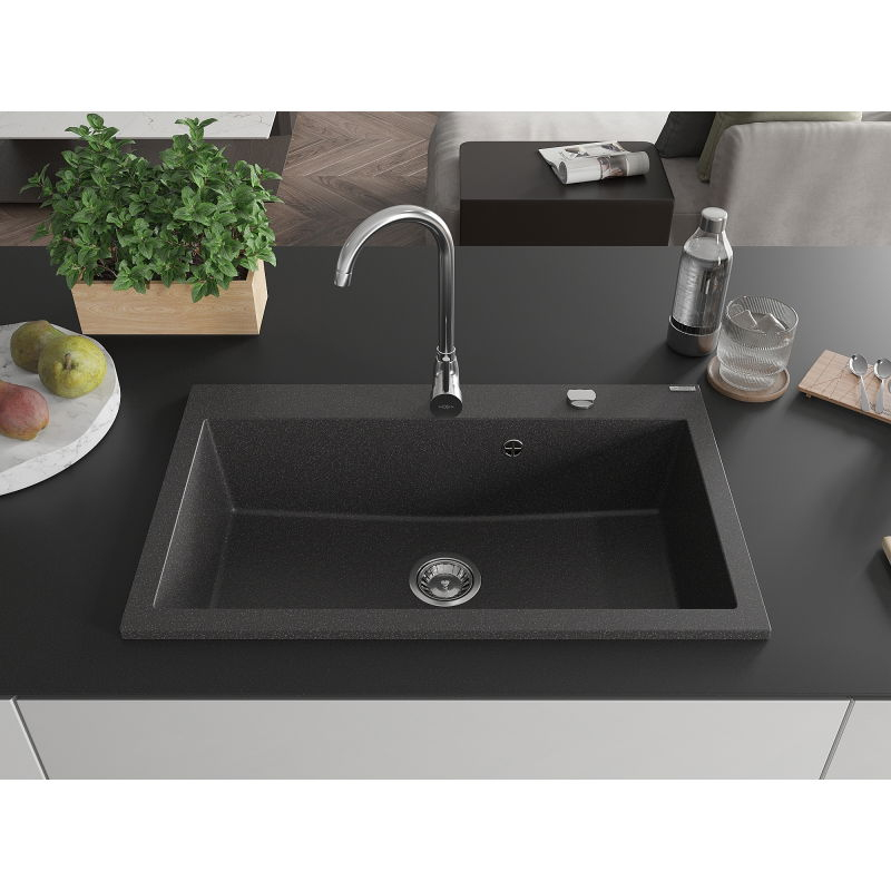 Jednodrezový žulový drez Mexen Elix 800 x 500 mm, čierna bodka, chrómovaný sifón - 6527801005-76