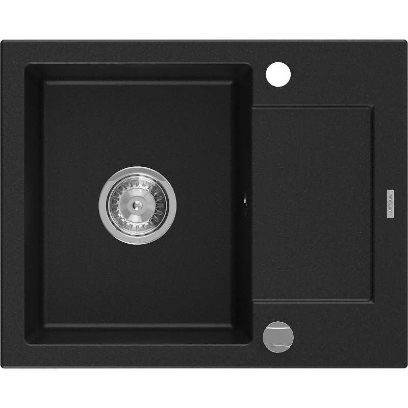 Jednodrezový žulový drez Mexen Enzo s odkvapkávačom 576 x 465 mm, čierny, chrómovaný sifón - 6506571005-77