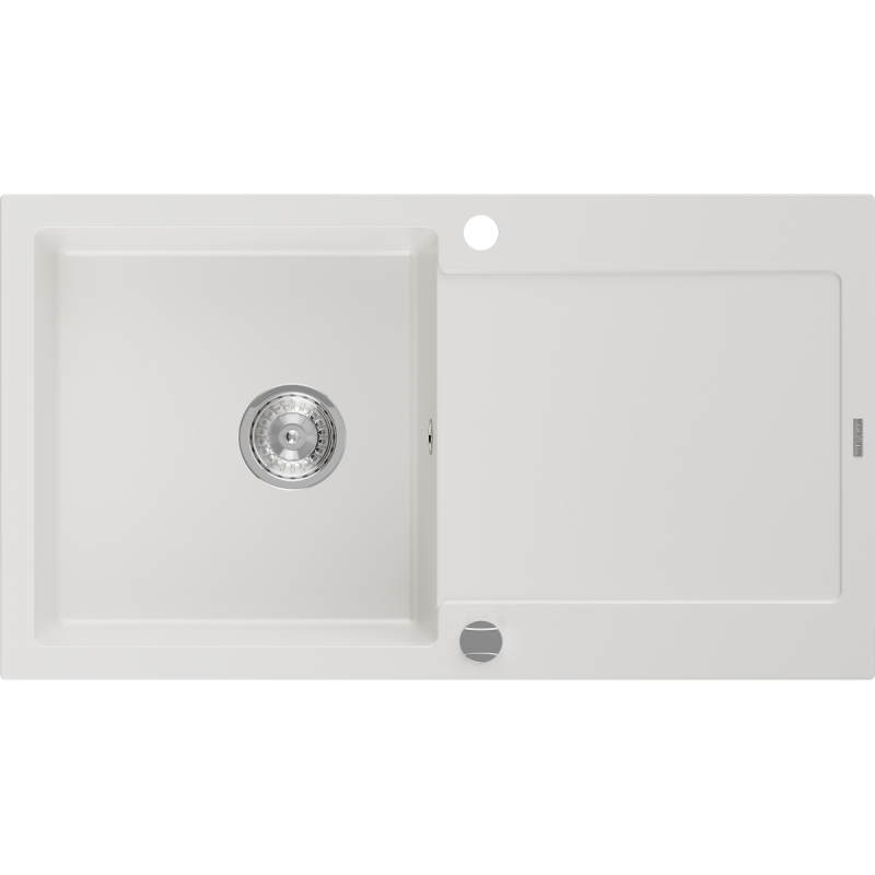 Jednodrezový žulový drez Mexen Leo s odkvapkávačom 900 x 500 mm, biely, chrómovaný sifón - 6501901010-20