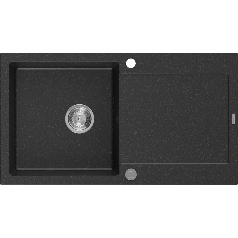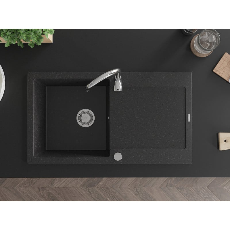 Jednodrezový žulový drez Mexen Leo s odkvapkávačom 900 x 500 mm, čierna/strieborná metalíza, chrómovaný sifón - 6501901010-73