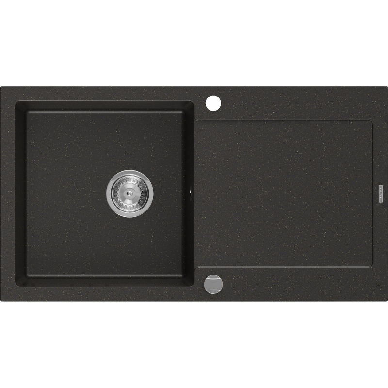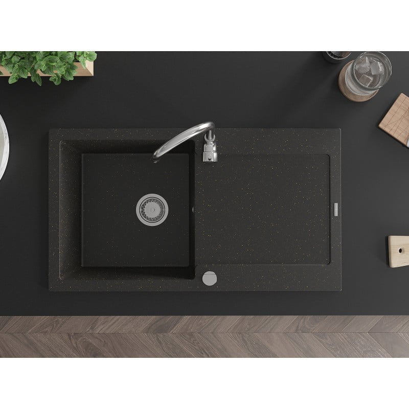 Jednodrezový žulový drez Mexen Leo s odkvapkávačom 900 x 500 mm, čierna/zlatá metalíza, chrómovaný sifón - 6501901010-75