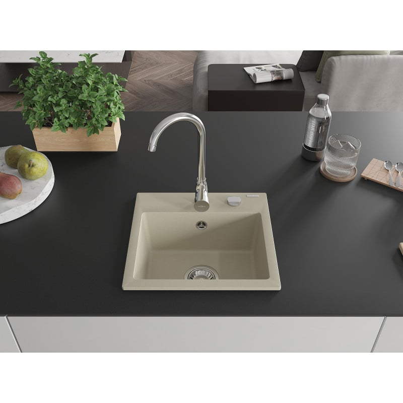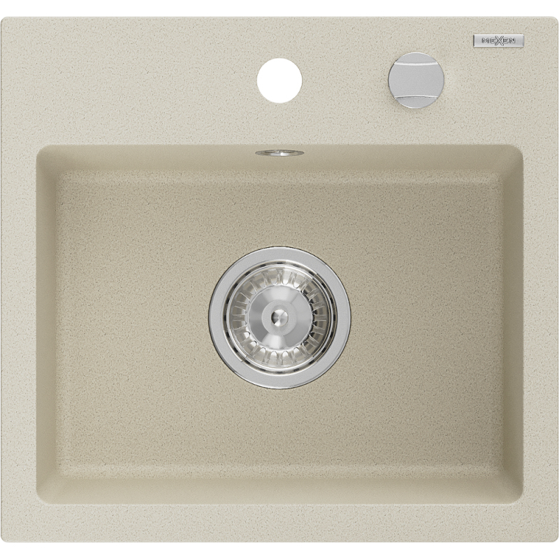 Jednodrezový žulový drez Mexen Milo 435 x 410 mm, béžový, chrómovaný sifón - 6505441000-69