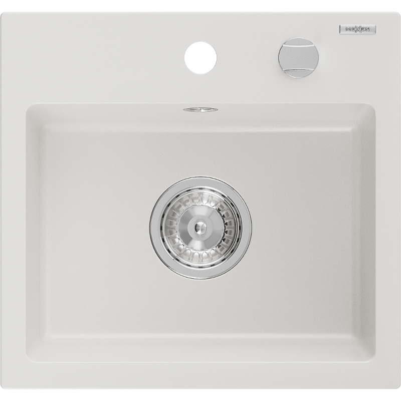 Jednodrezový žulový drez Mexen Milo 435 x 410 mm, biely, chrómovaný sifón - 6505441000-20