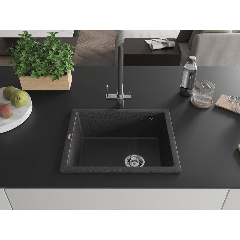 Jednodrezový žulový drez Mexen Pedro 560 x 460 mm, čierna bodka, chrómovaný sifón - 6508561000-76