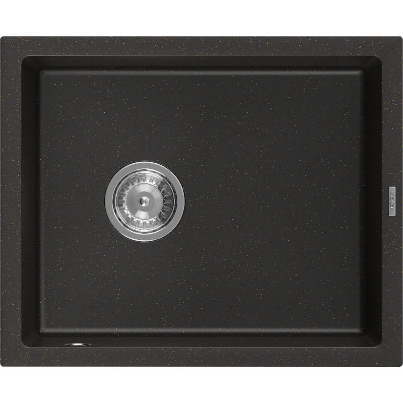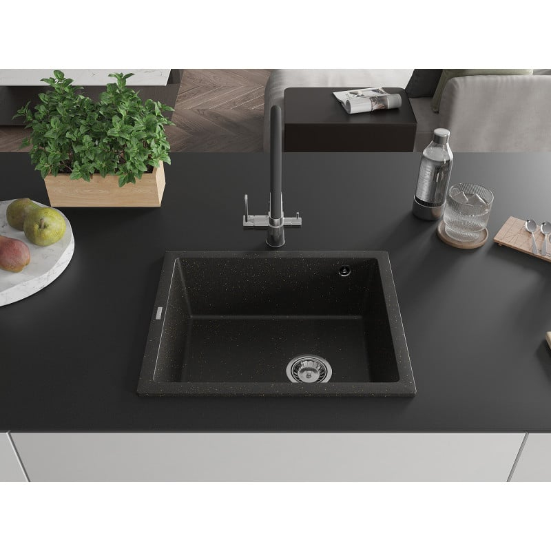 Jednodrezový žulový drez Mexen Pedro 560 x 460 mm, čierna/zlatá metalíza, chrómovaný sifón - 6508561000-75