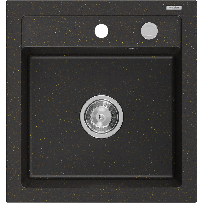 Jednodrezový žulový drez Mexen Vito 520 x 490 mm, čierna / zlatá metalíza, chrómovaný sifón - 6503521000-75