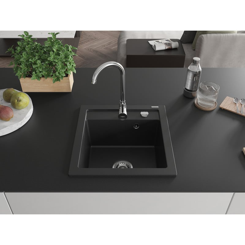 Jednodrezový žulový drez Mexen Vito 520 x 490 mm, čierny, chrómovaný sifón - 6503521000-77