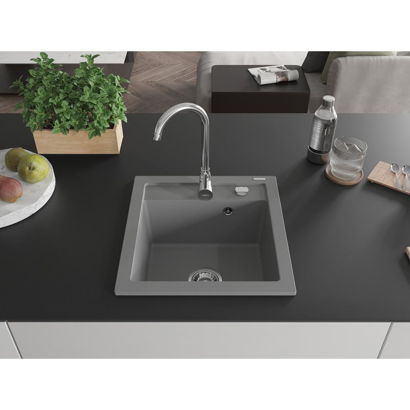 Jednodrezový žulový drez Mexen Vito 520 x 490 mm, sivý, chrómovaný sifón - 6503521000-71