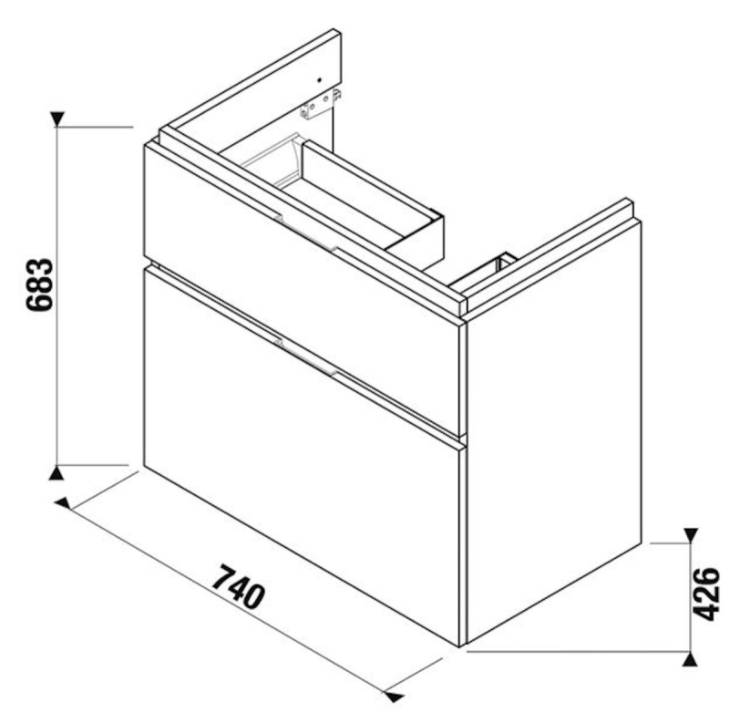 JIKA Skrinka umýv 75 cm 8.1242.2, 2 zásuvky, L výrez H40J4254045191