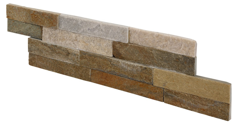Kamenný obklad z bridlicových pásikov svojim vzhľadom a štruktúrou verne imituje prírodný kameň v béžovej farbe o rozmere 10x40 cm.