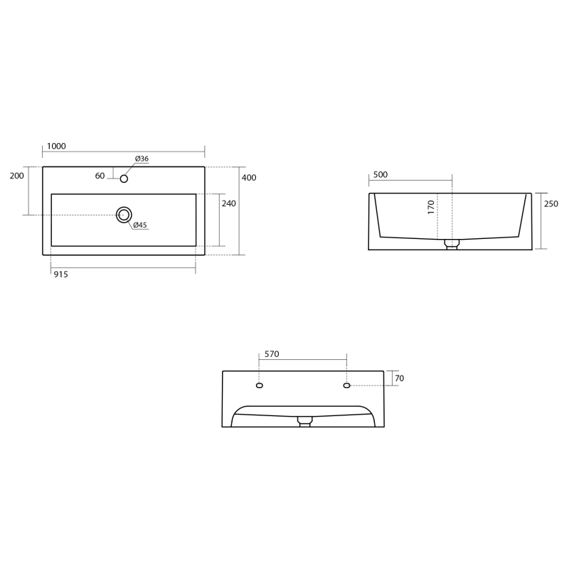 KANAAL keramické umývadlo 100x40cm, čierna mat