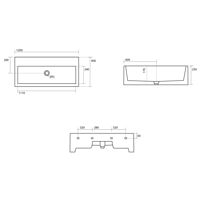 KANAAL keramické umývadlo 120x40cm, biela