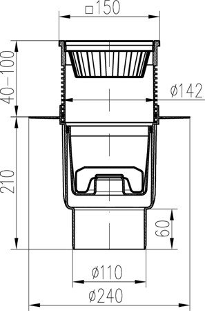 Kanalizačný vpust spodný D110 NEPTUN, golier, plastová mriežka 827 X