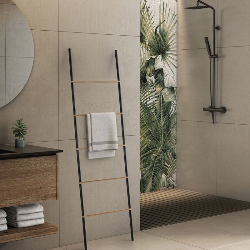 KENTA sušiak uterákov na opretie 450x1610x21mm, čierna/bambus 303141 57920