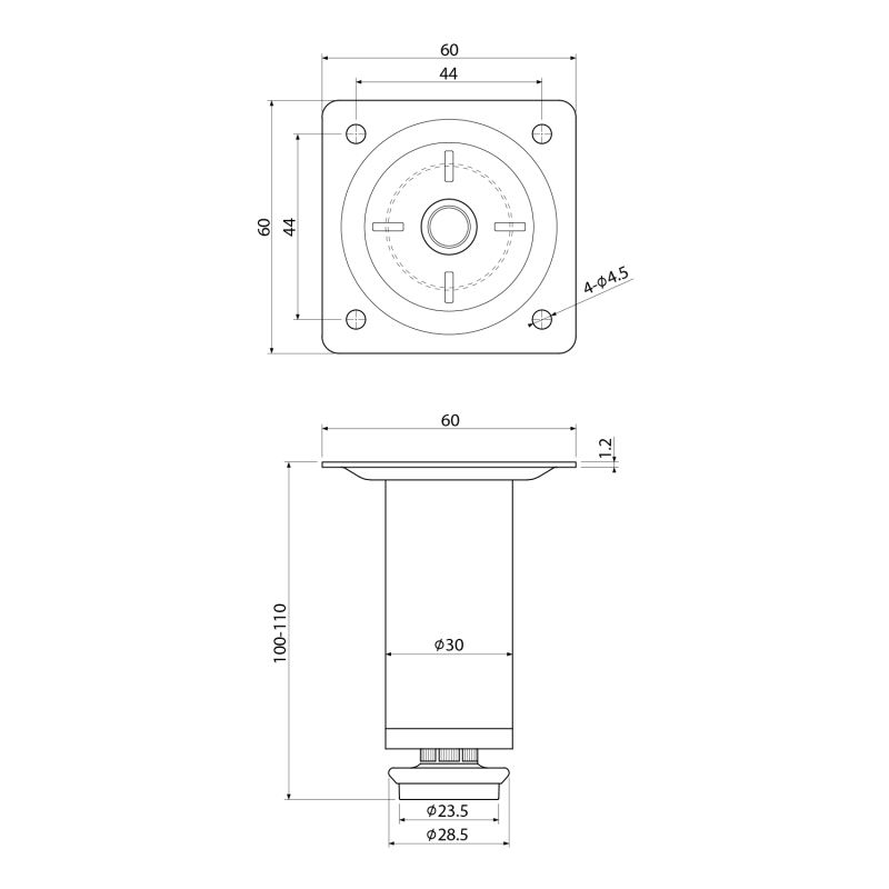 KERAMIA FRESH výškovo nastaviteľná nožička, výška 100-110mm, čierna mat 10077B 10077B 56127