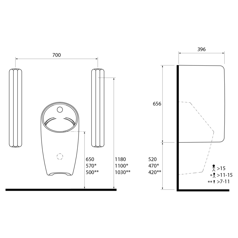 Keramická deliaca stena medzi urinálmi 39x66 cm, biela