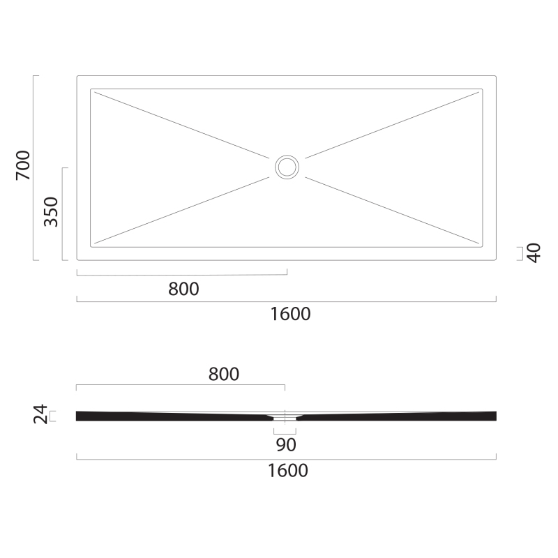 Keramická sprchová vanička, obdĺžnik 160x70x2cm, cenere mat