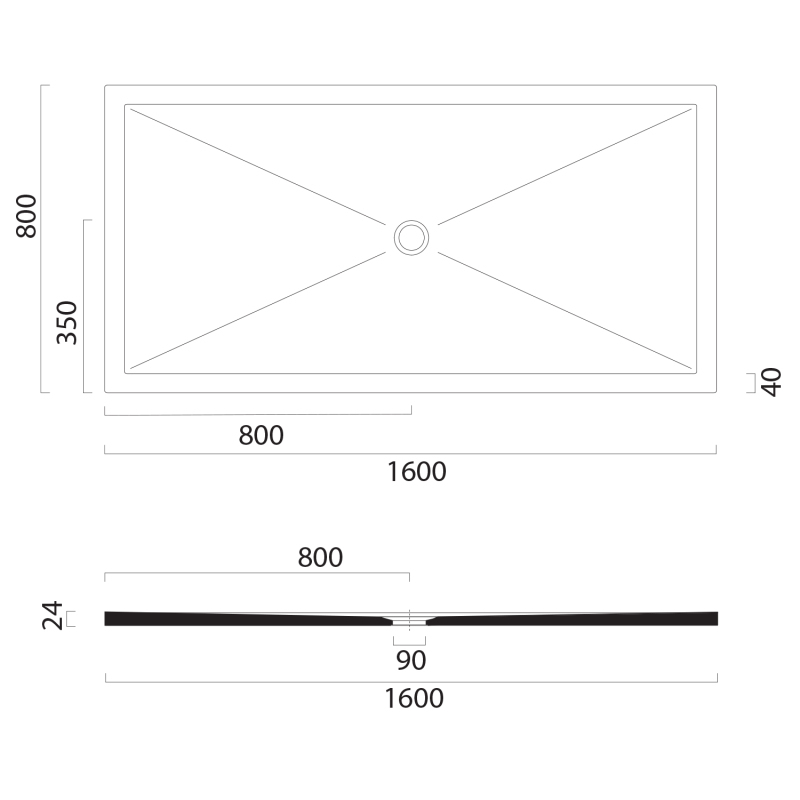 Keramická sprchová vanička, obdĺžnik 160x80x2cm, creta mat