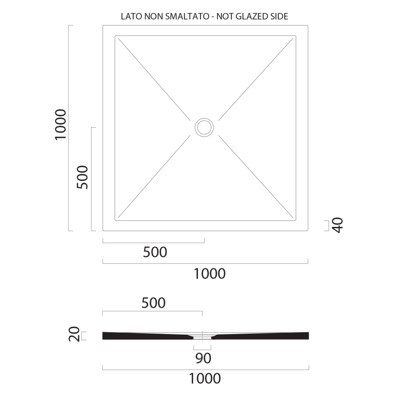 Keramická sprchová vanička, štvorec 100x100x2cm, cenere mat