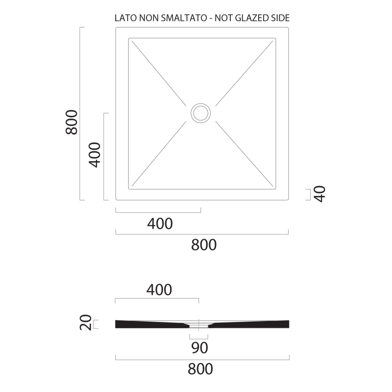 Keramická sprchová vanička, štvorec 80x80x2cm, agave mat